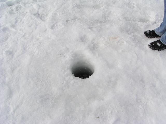 People just left these ice fishing holes.