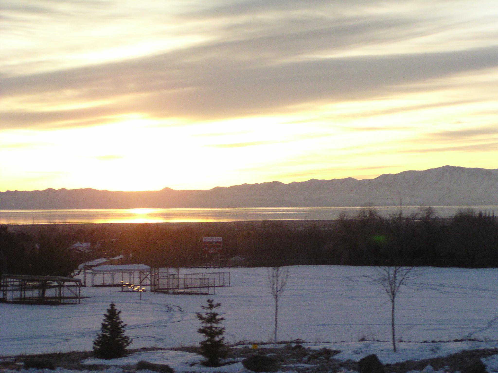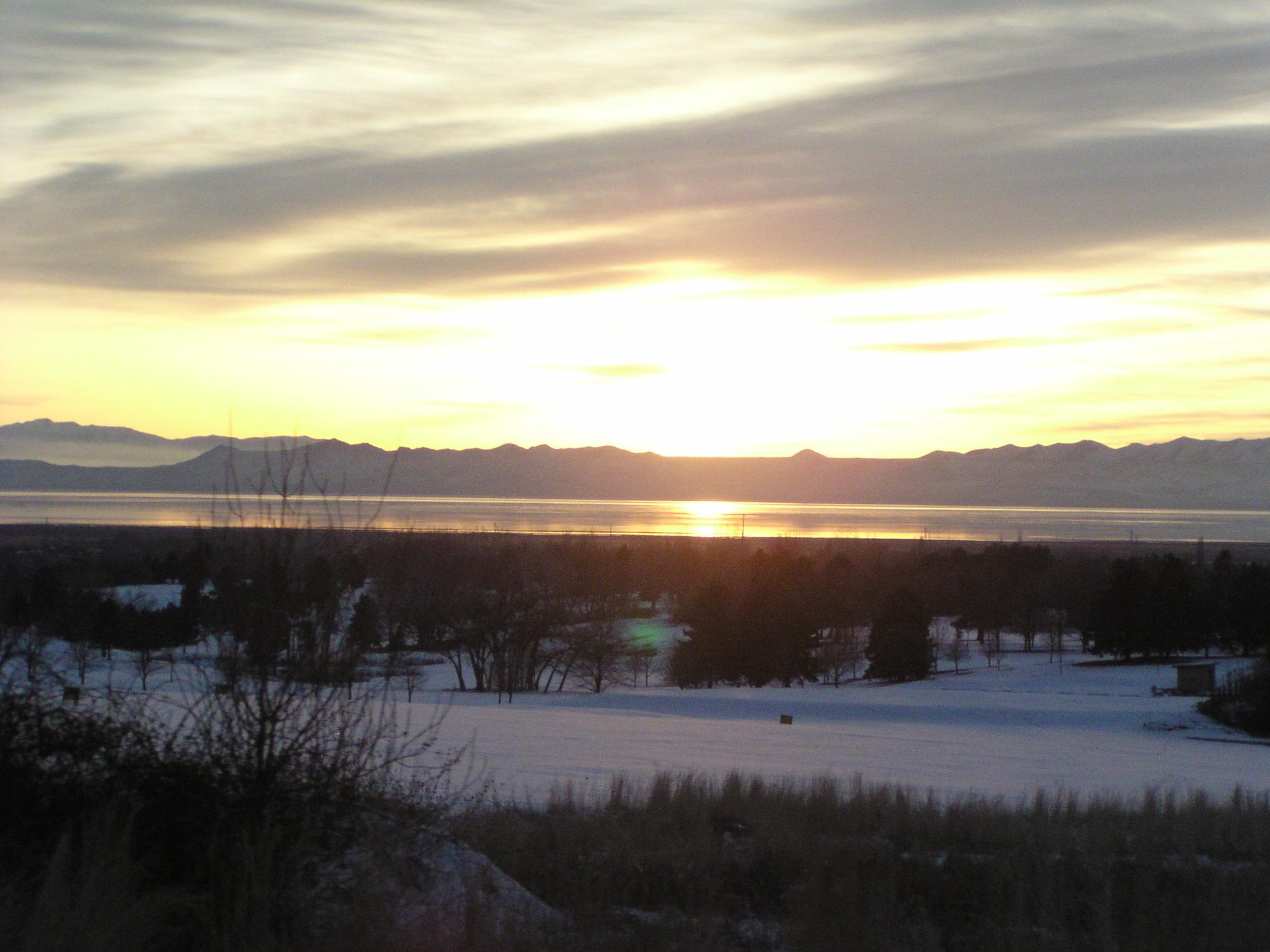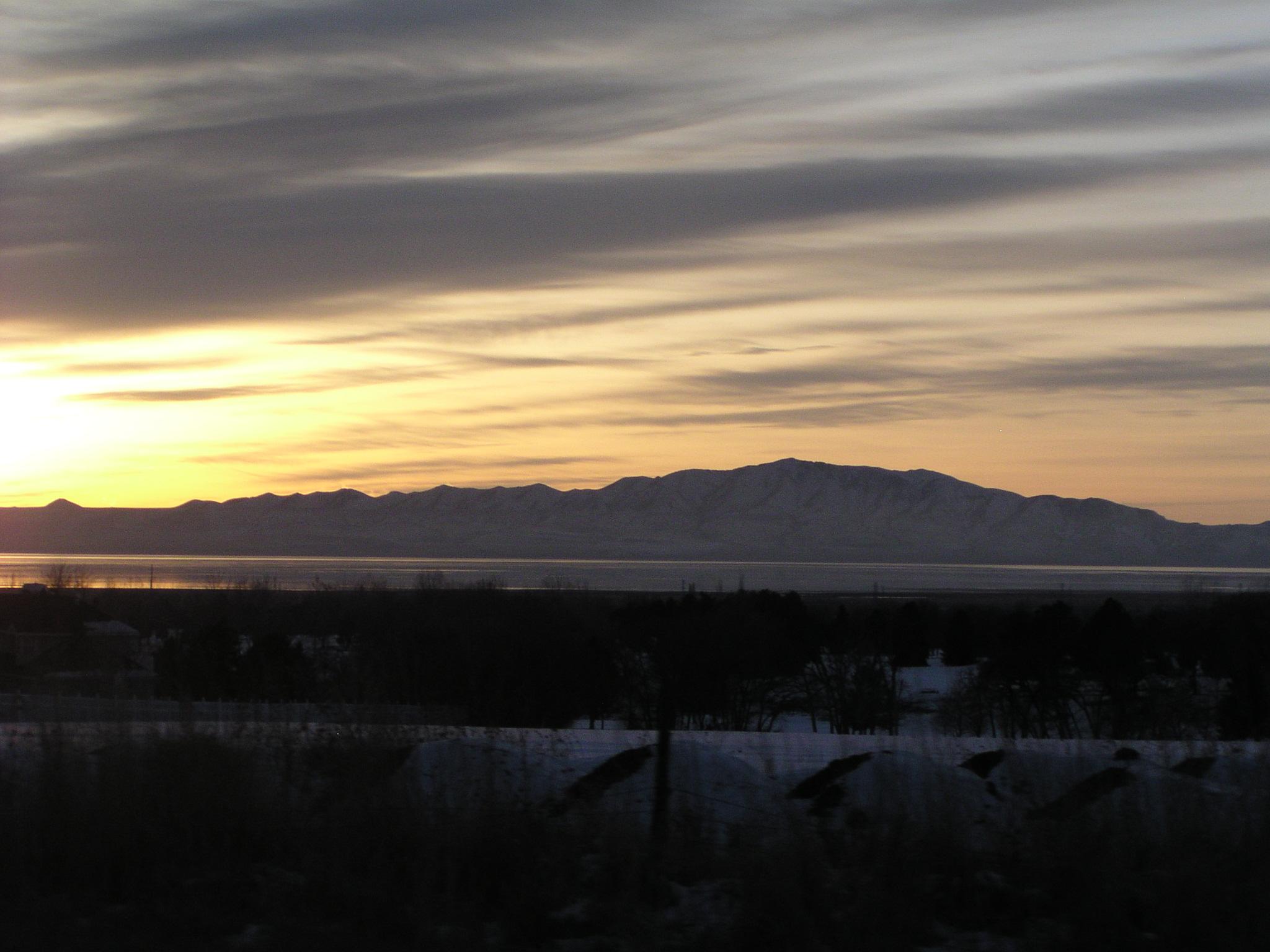 Sunset over the Great Salt Lake north of SLC along US 89.