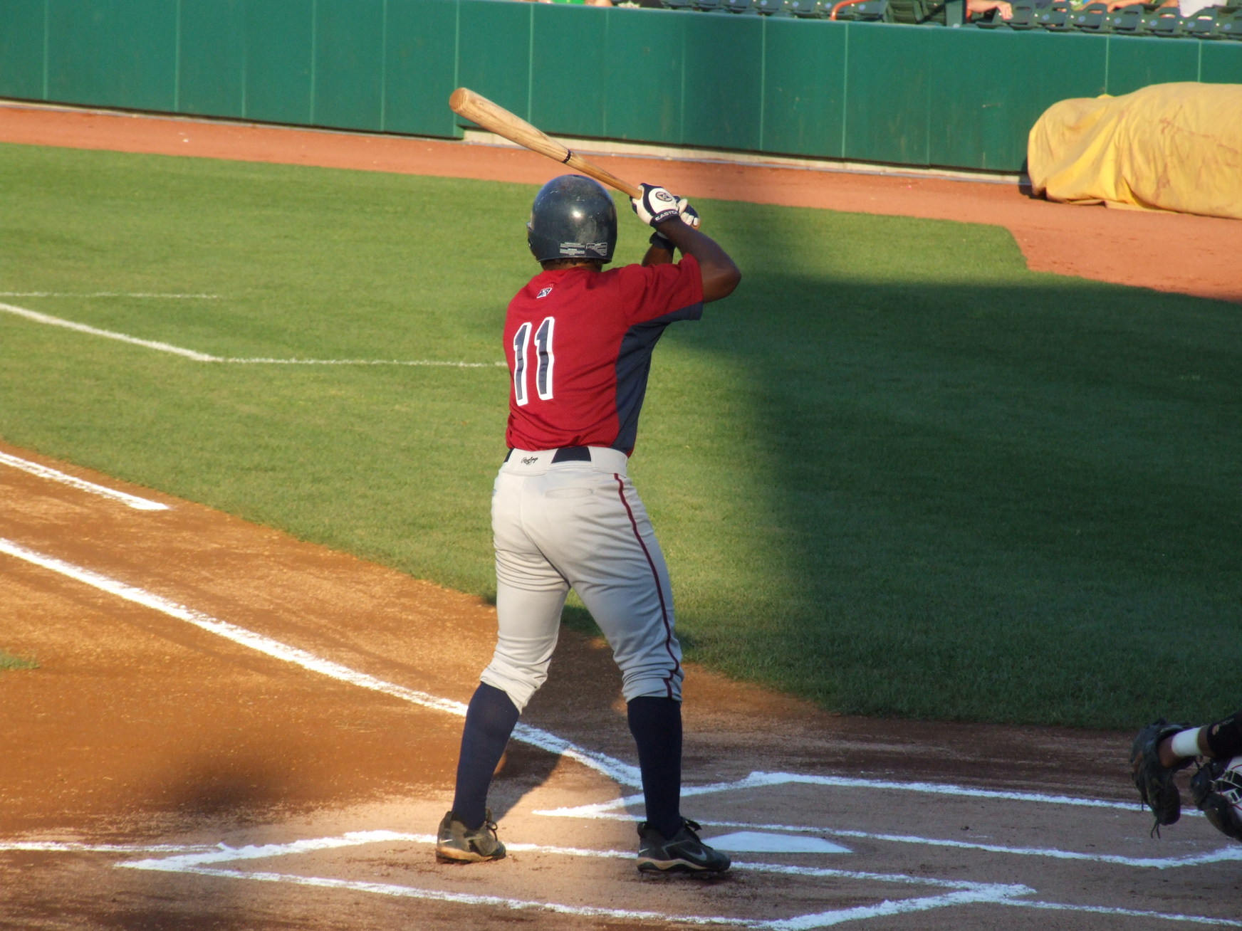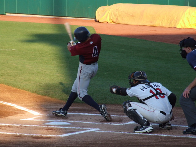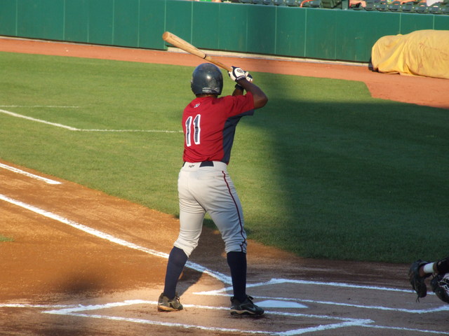 J.B. Shuck bats with Jeff Hulett leading off first in the 3rd inning.