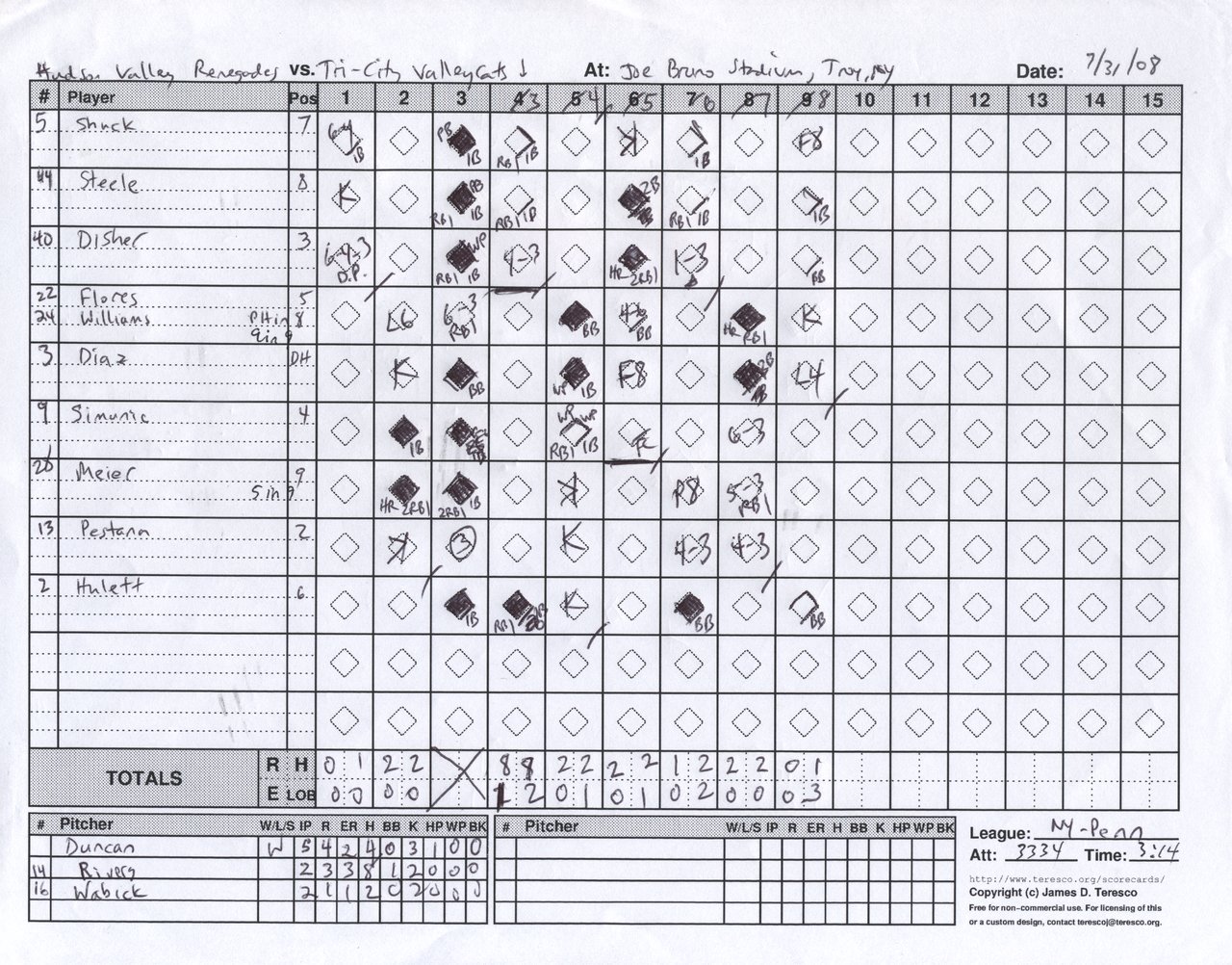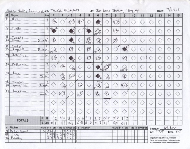 Hudson Valley Renegades vs. Tri-City ValleyCats, Joe Bruno Stadium, Troy, New York - July 31, 2008