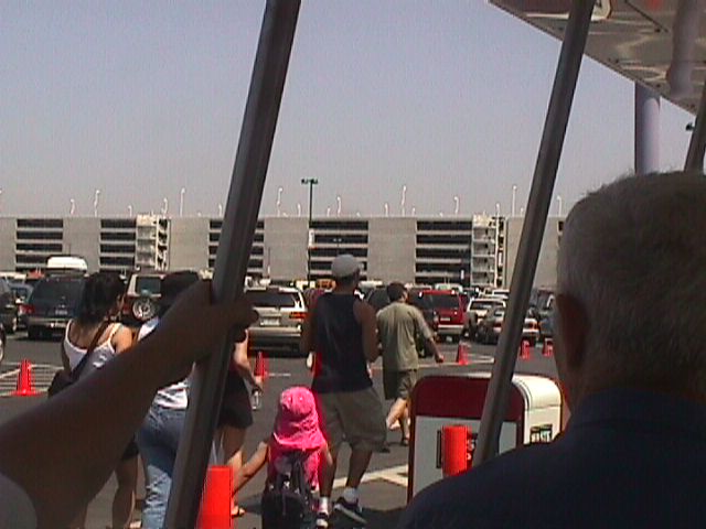 Getting on the tram. The parking garage being built is huge, meant to replace all the parking lost when they started to build a new park in the old parking lot.
