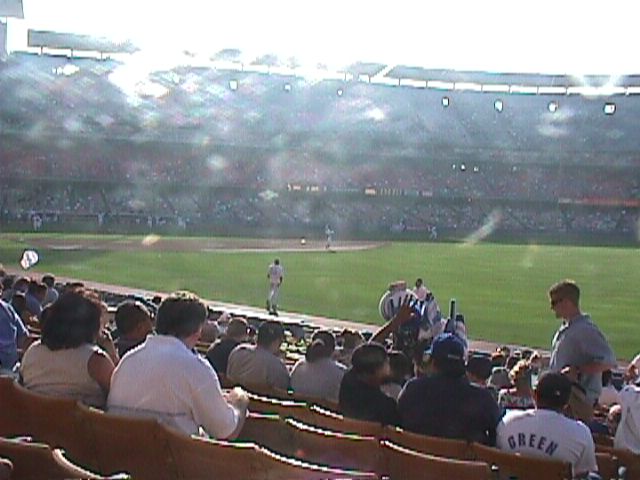 The sun has gone below the third base grandstand and people are actually showing up now.