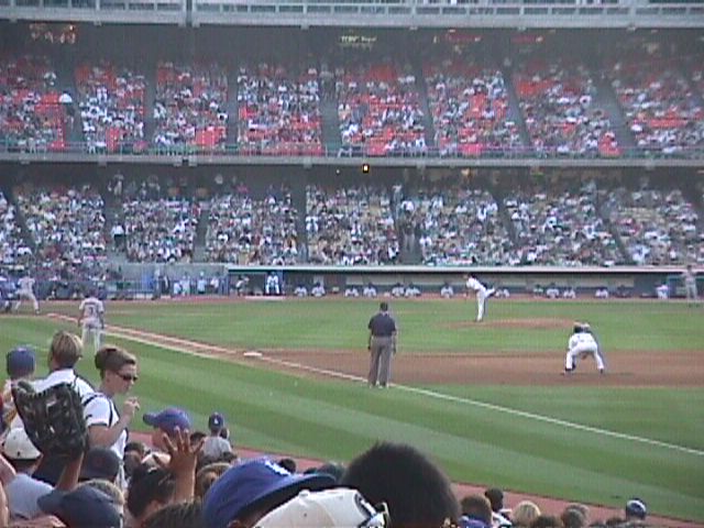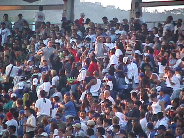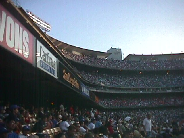 Ah yes, the beach ball. That seems to be the only thing that really gets a Dodger crowd excited. Bases loaded for the Dodgers? Who cares. Two strikes on a Padre batter? So what. As long as there's a beach ball... Oh yeah, if the scoreboard says to make noise, there might be some but only for as long as the scoreboard asks for it. If nothing else, they at least got into the seventh inning stretch a bit more than they do in some places.