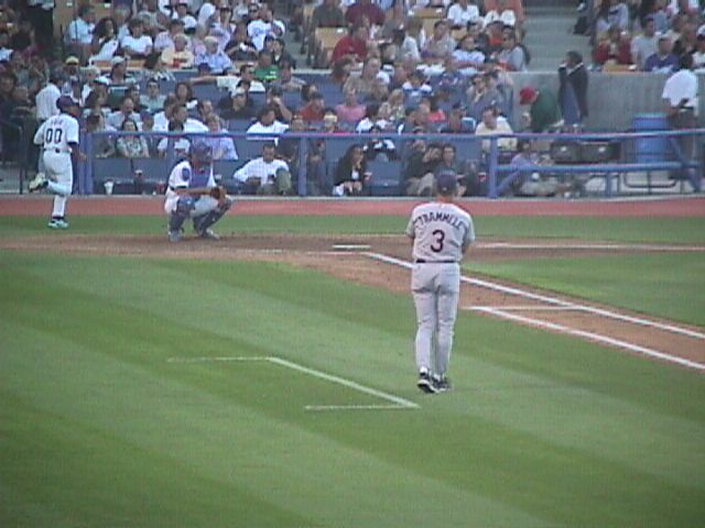 Just about game time. We're going to be looking into the sun for a while. This is a 6 PM start, apparently because there are fireworks scheduled after the game. Either some people were confused by this or Dodger fans are much more "late-arriving" than I ever imagined possible.