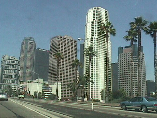 Passing by LA's downtown on the freeway. How did I take it? Well, if everyone in California can talk on their cell phones while driving in traffic, why can't I take pictures?