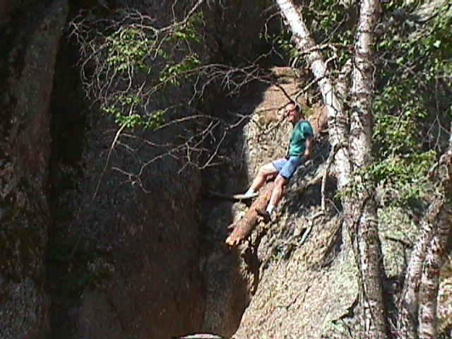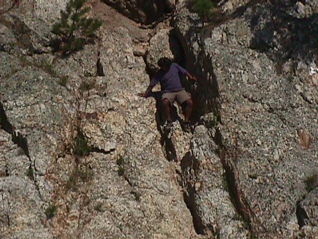Nathan trying to find a way down which does not involve any broken bones.