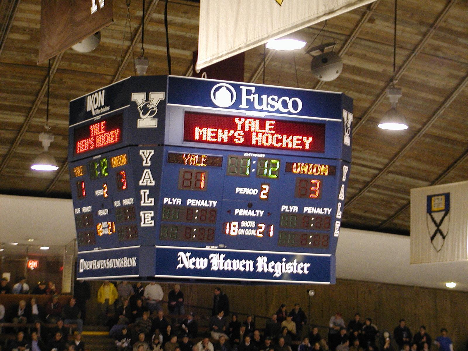 Union power play on the board during the second intermission.