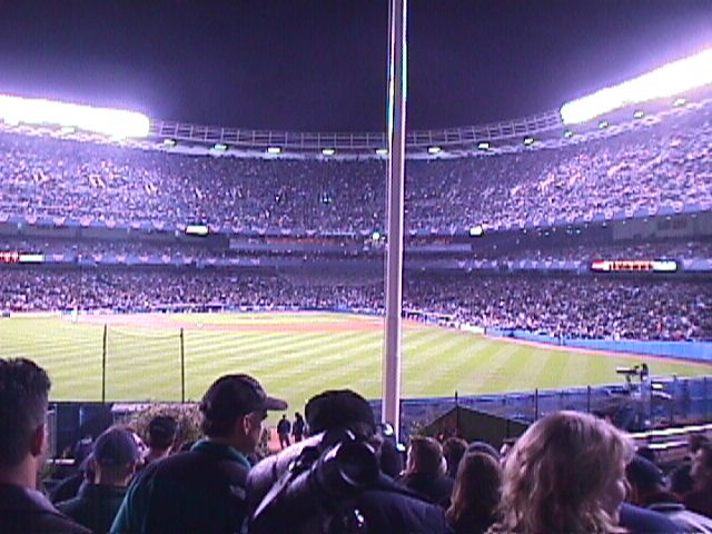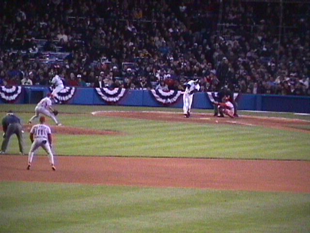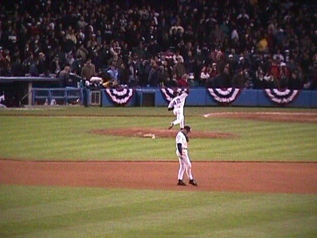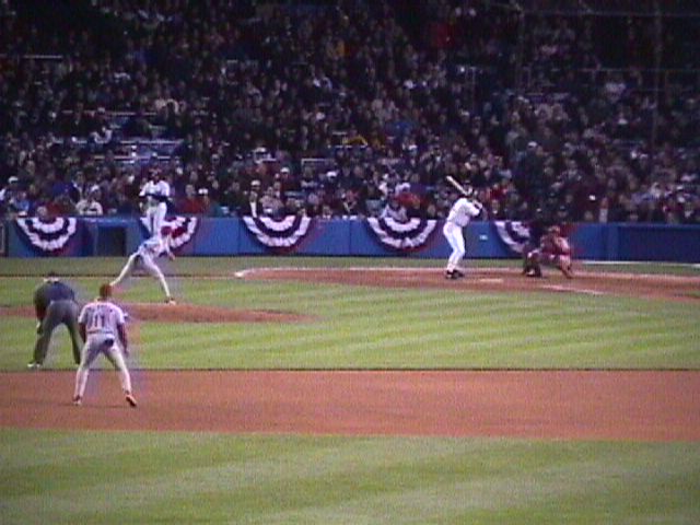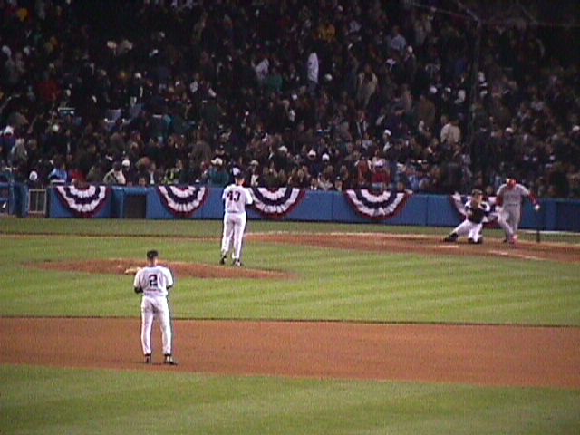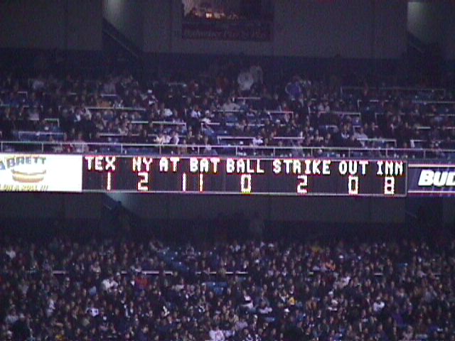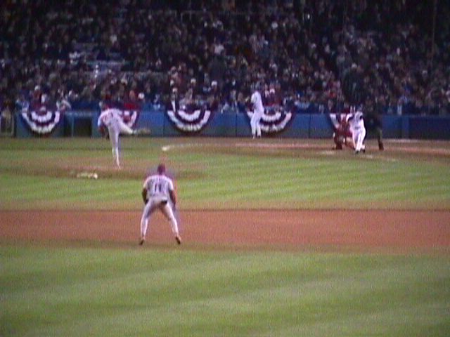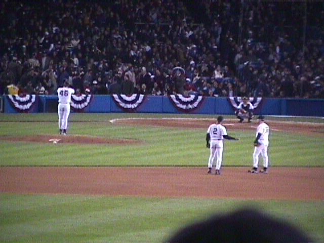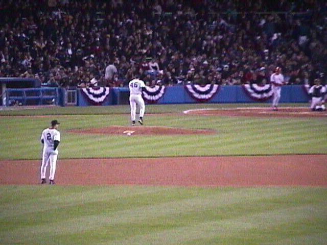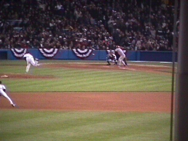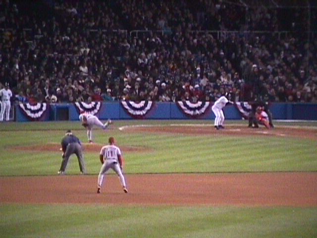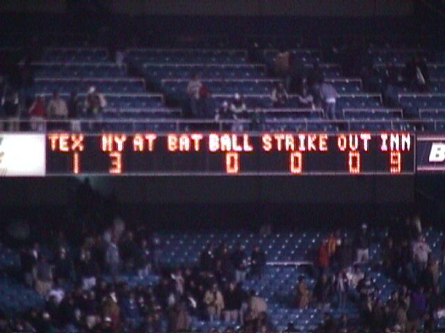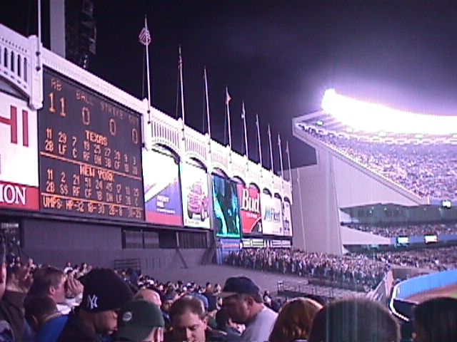 Yankee Stadium on October 8, 1999. The game is the second of the 1999 American League Division Series between the Texas Rangers and New York Yankees.