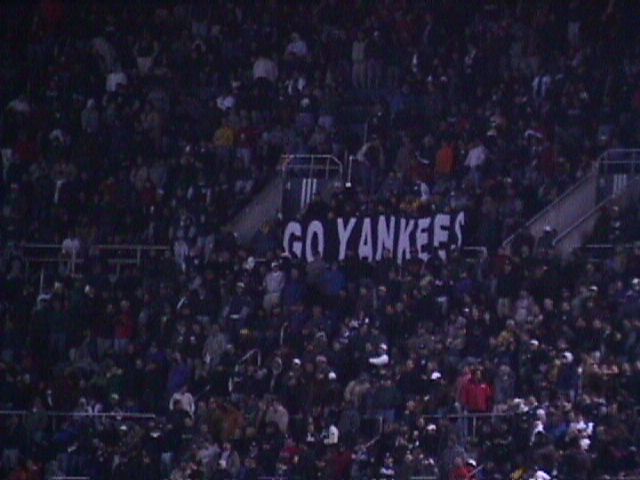 Happy people in the upper deck after Ricky Ledee's RBI double chased Rick Helling.