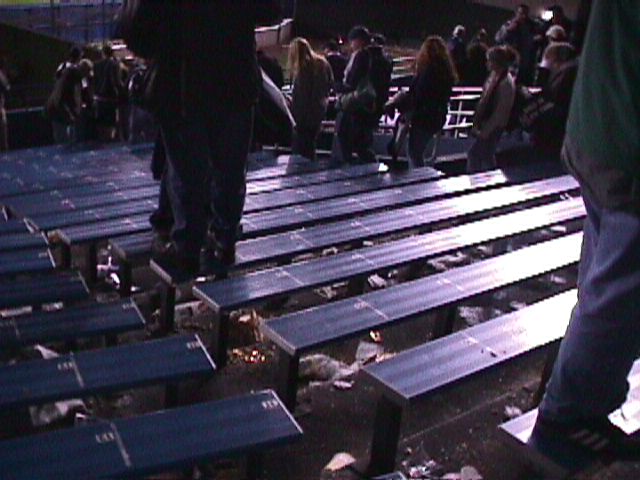 The mess left behind in the bleachers.