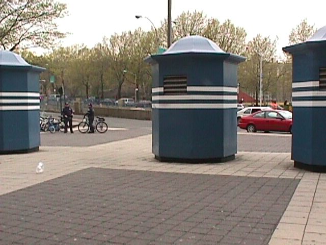 Unused ticket booths and some of the NYPD.