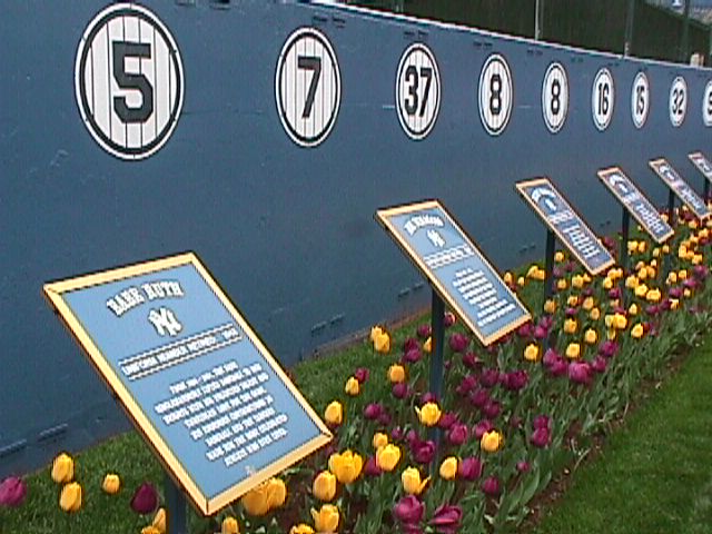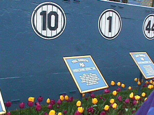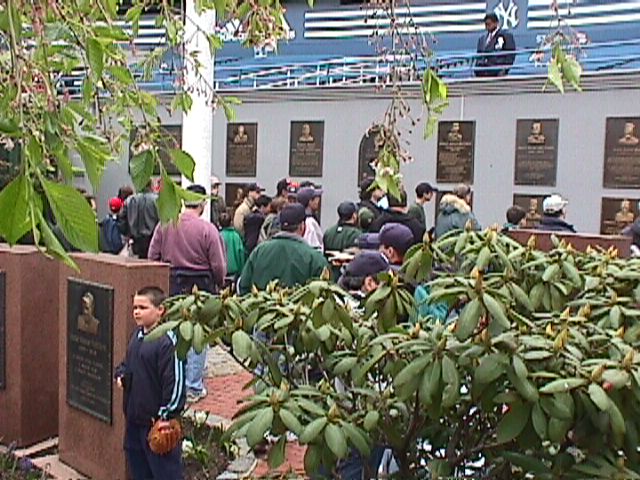 We took the opportunity of being there early for a weeknight game and visited Monument Park. Here is Darren looking at a plaque.