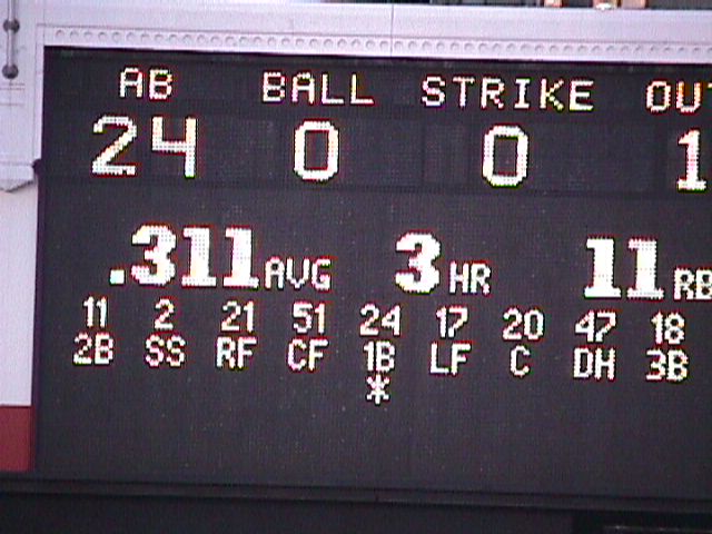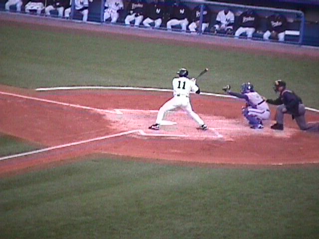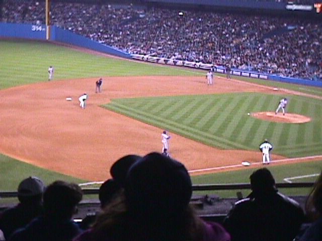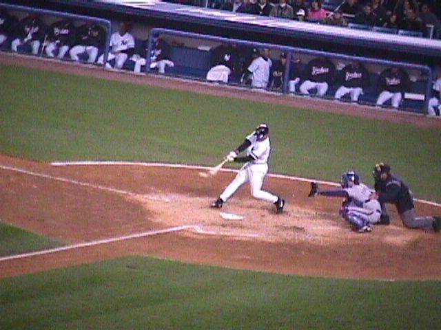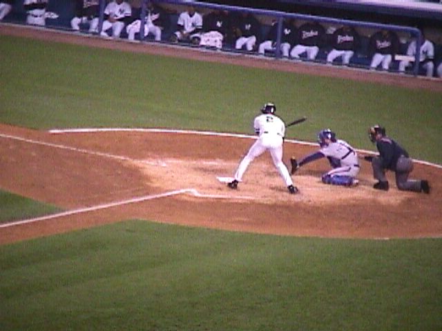 Another Yankee rally, Jeter on third, Bernie Williams at second, and Martinez at first, with Ledee at bat.
