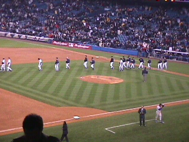 The Yankees take the field.