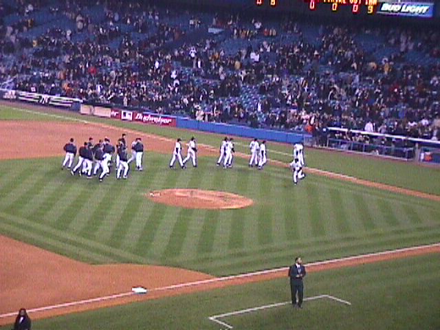 And the Yankees have a 4-0 lead with Ricky Ledee at bat.