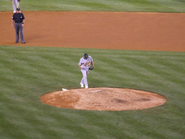 The A's bring on Chad Gaudin in relief.