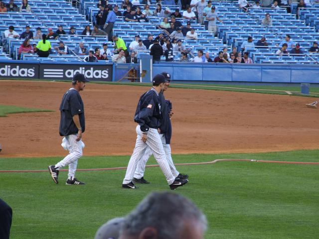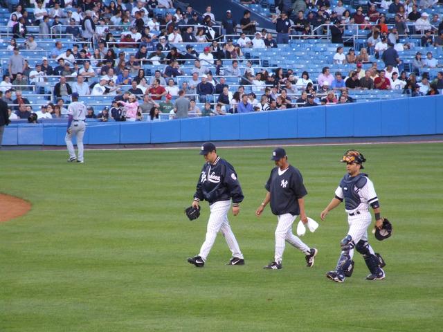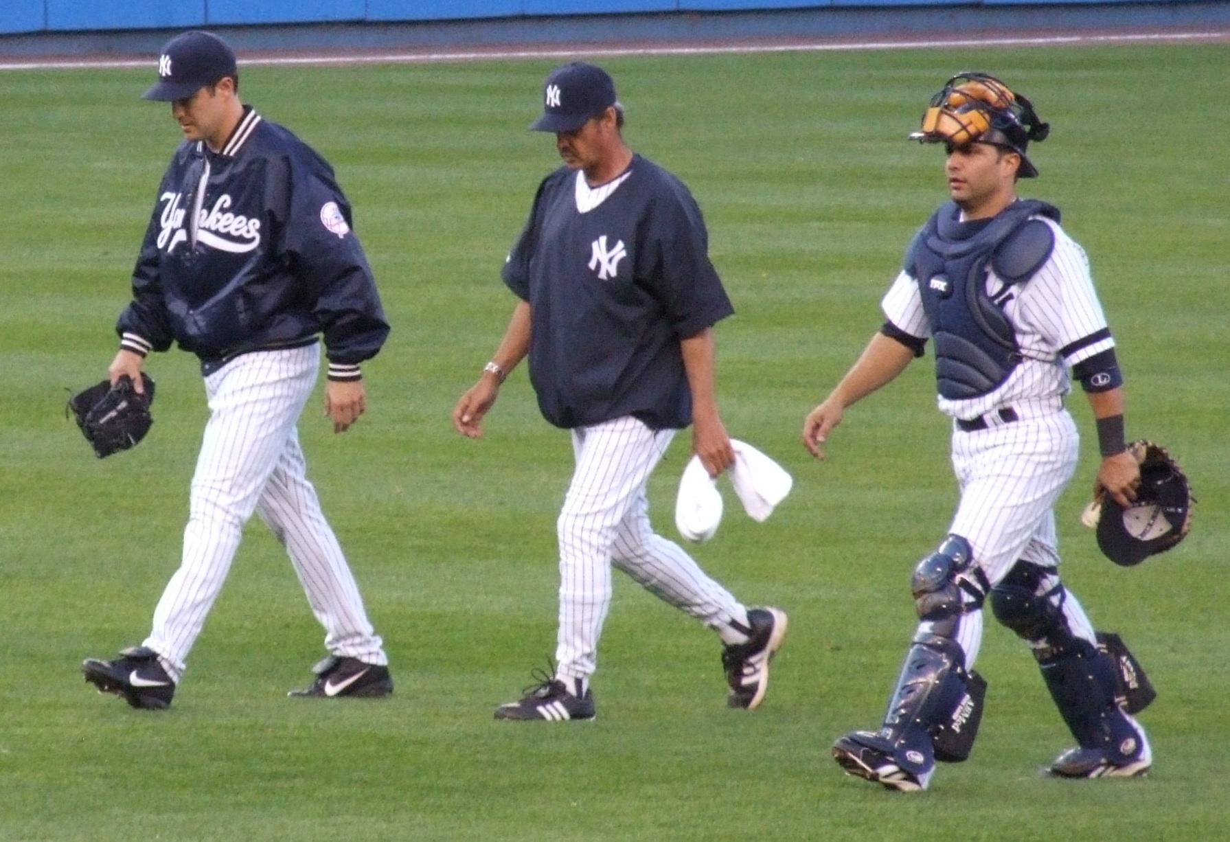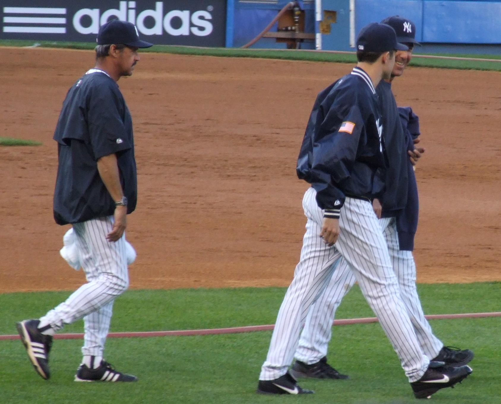 Ron Guidry, Wil Nieves, and Mike Mussina head out for warmups.