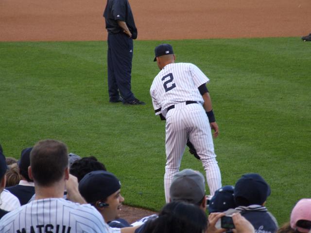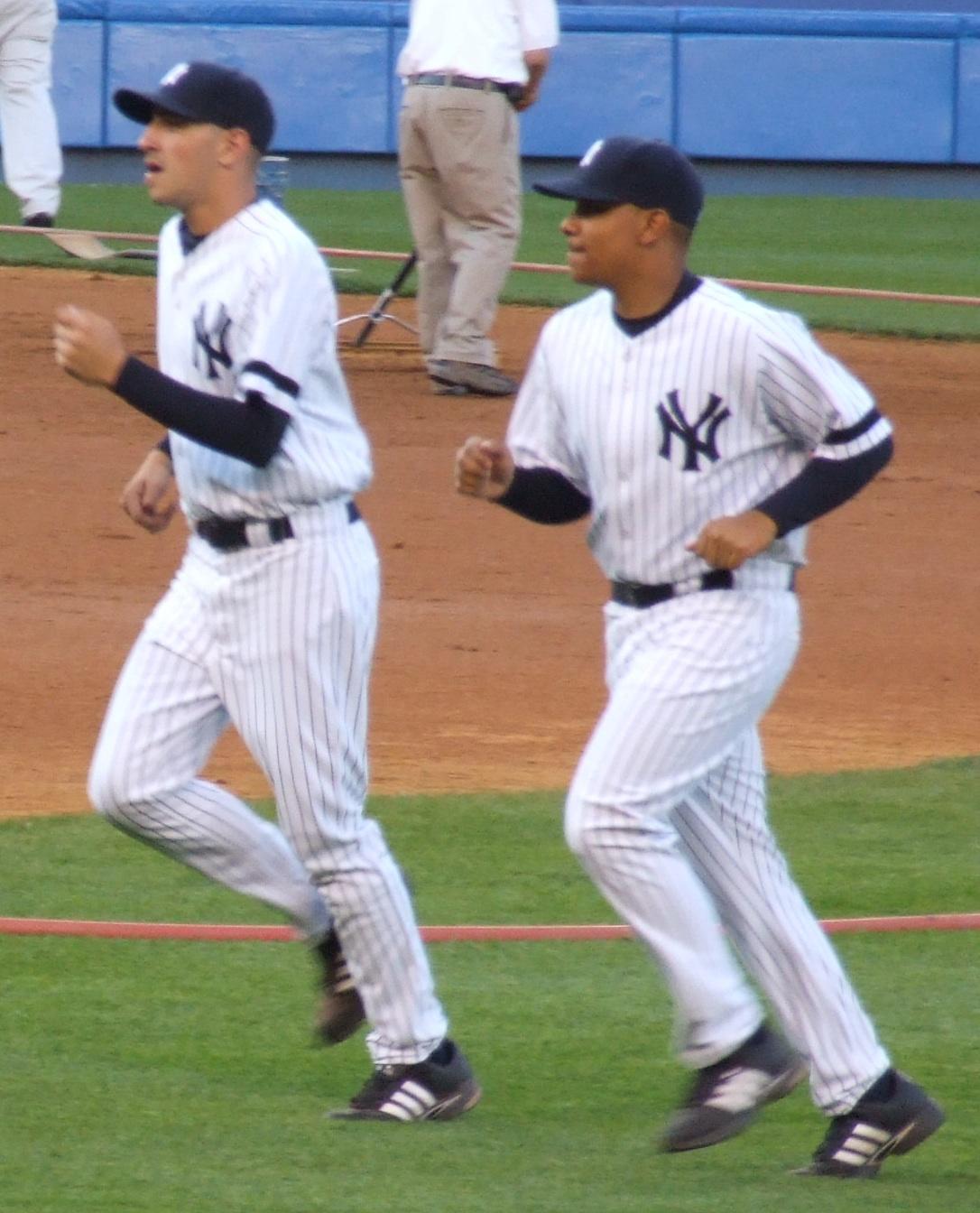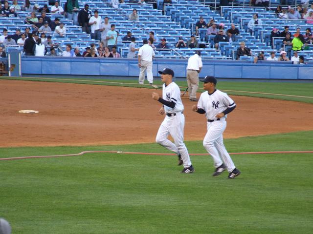 Jeter on first, Rodriguez batting.