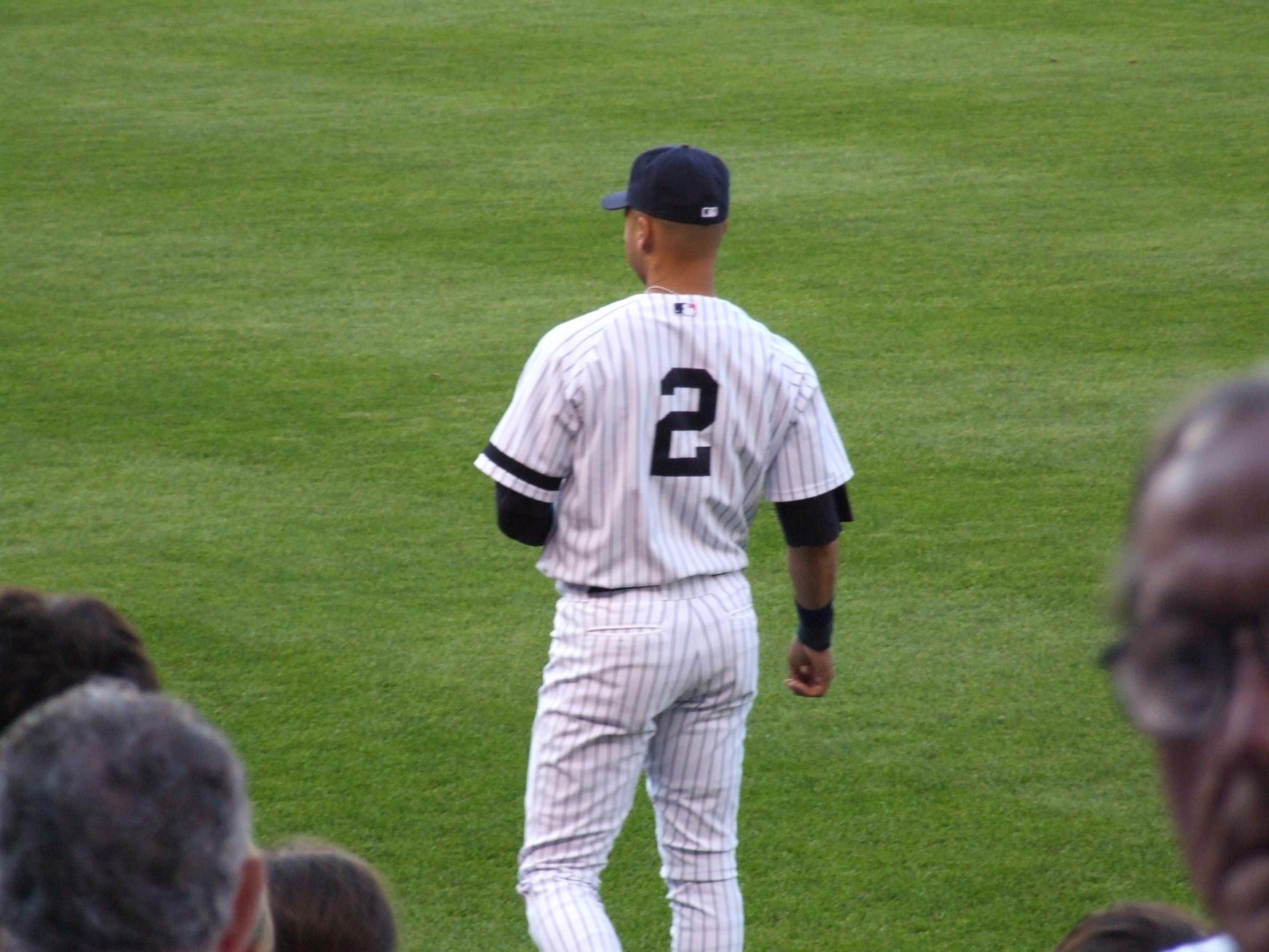 Derek Jeter long-tossing before the game.
