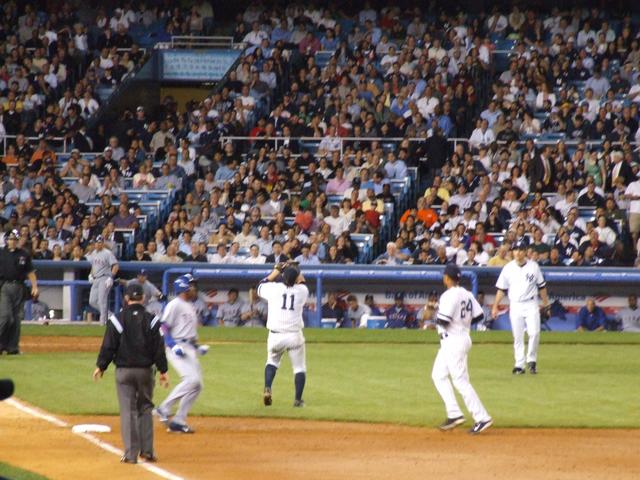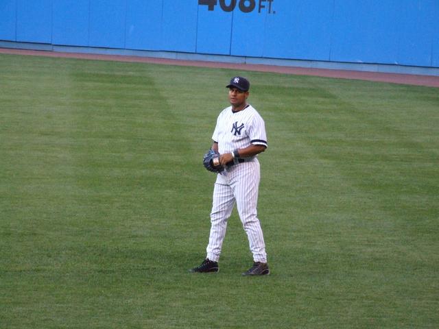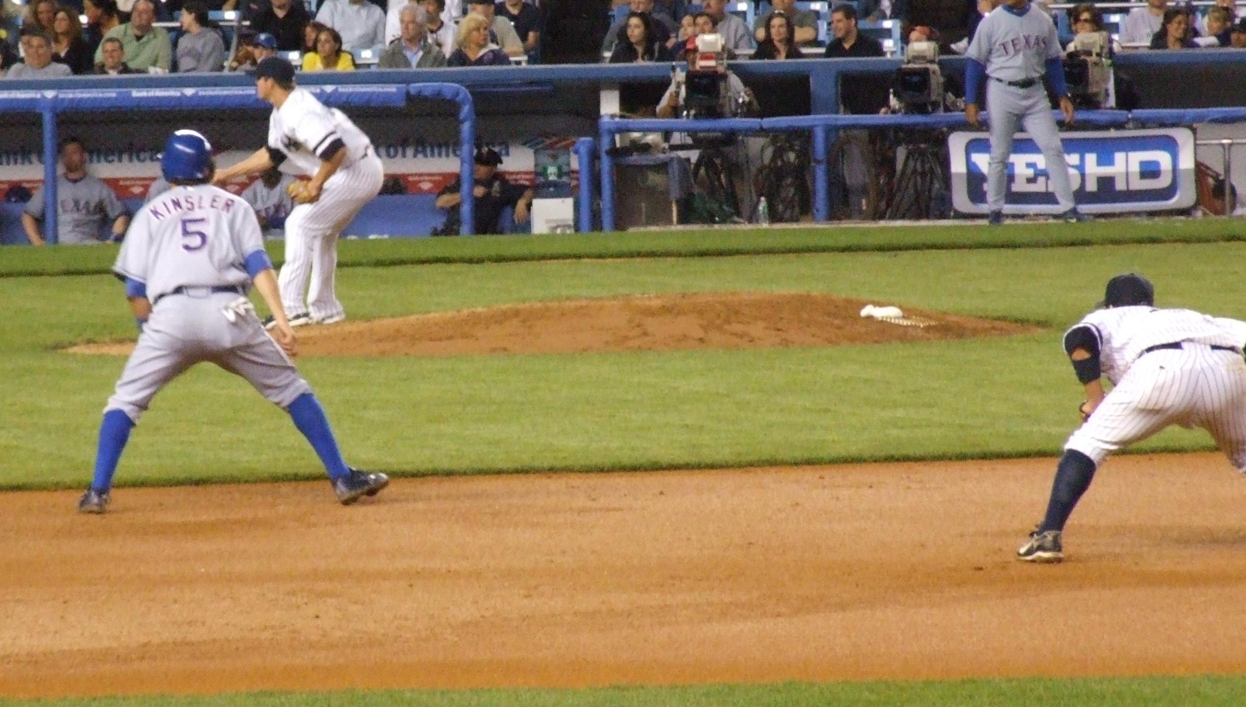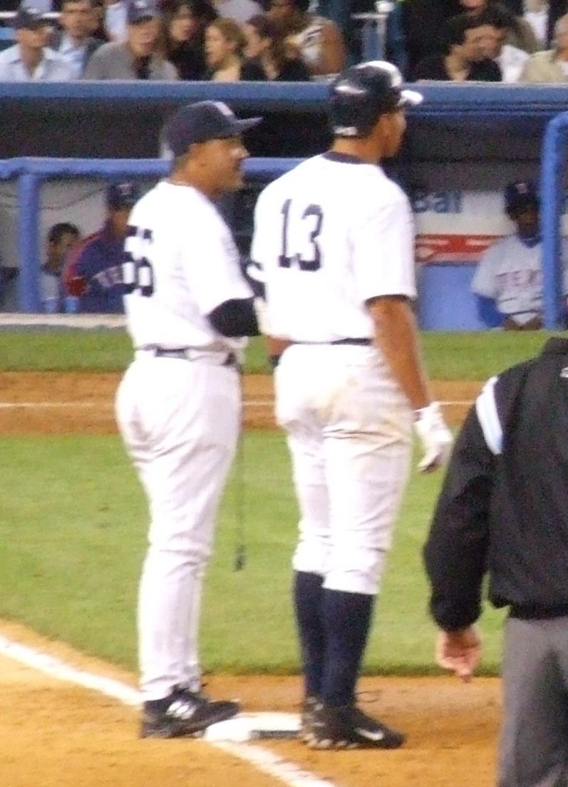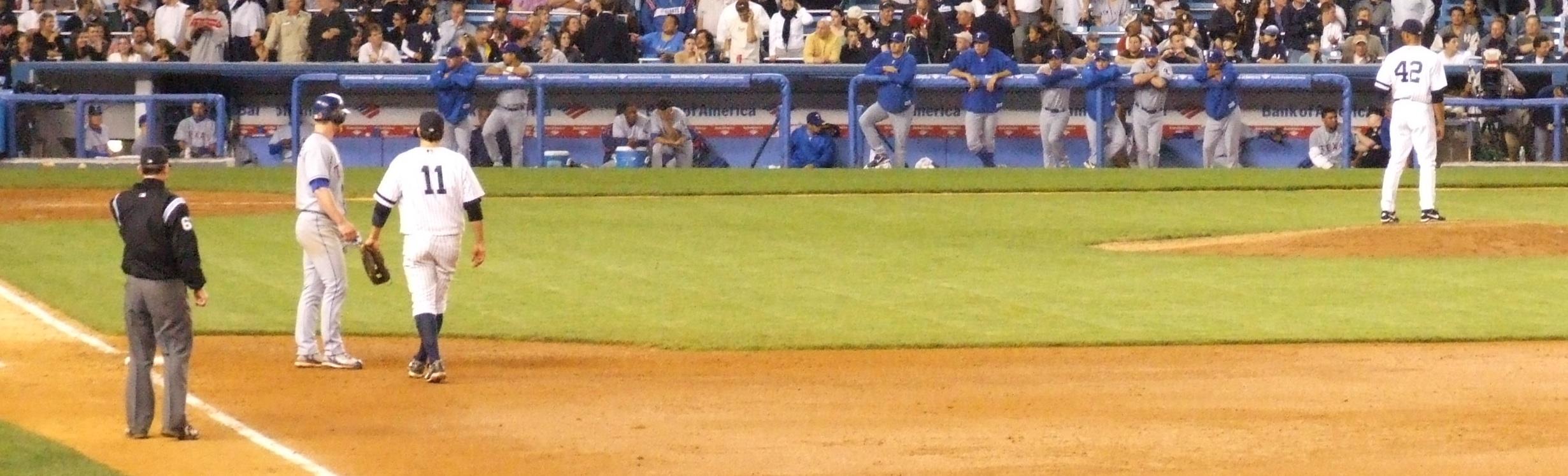 Alex Rodriguez on first in the third.