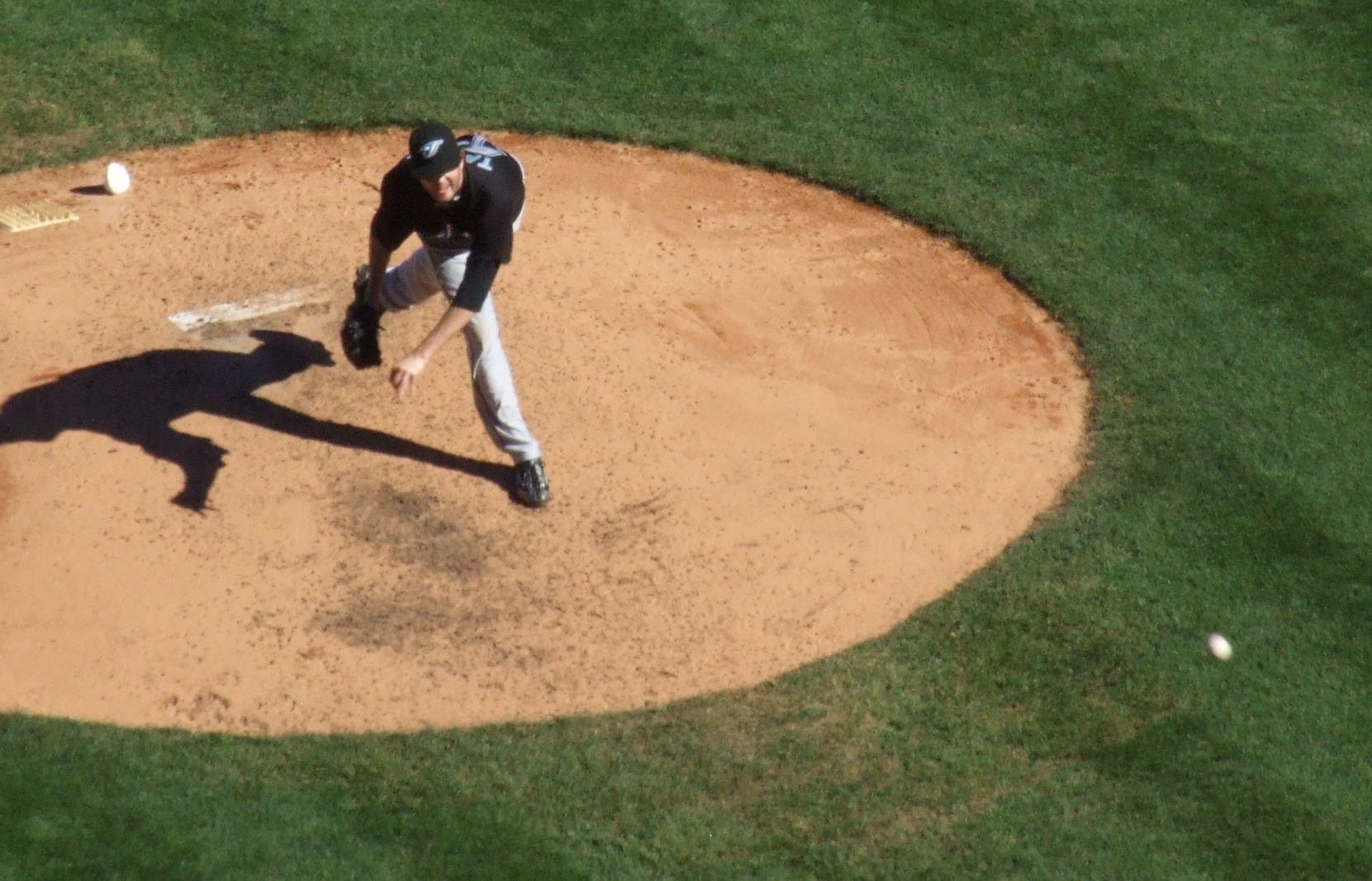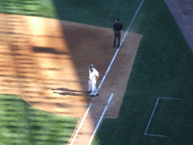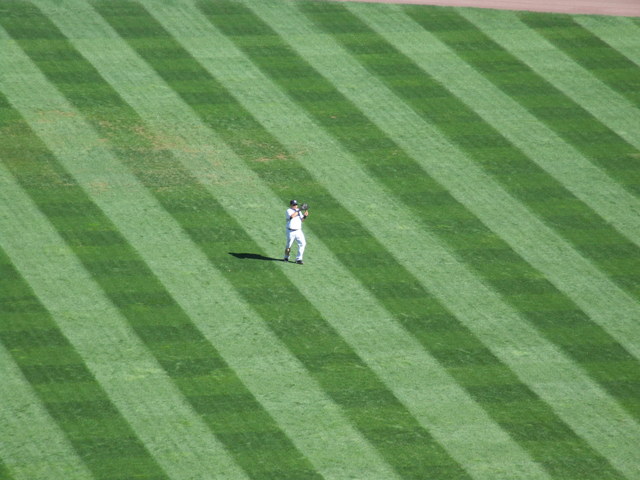 After a home run into the black, a fan ran out to get the ball and was thrown out.