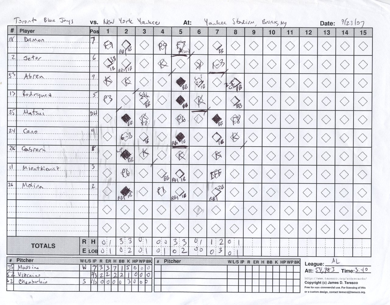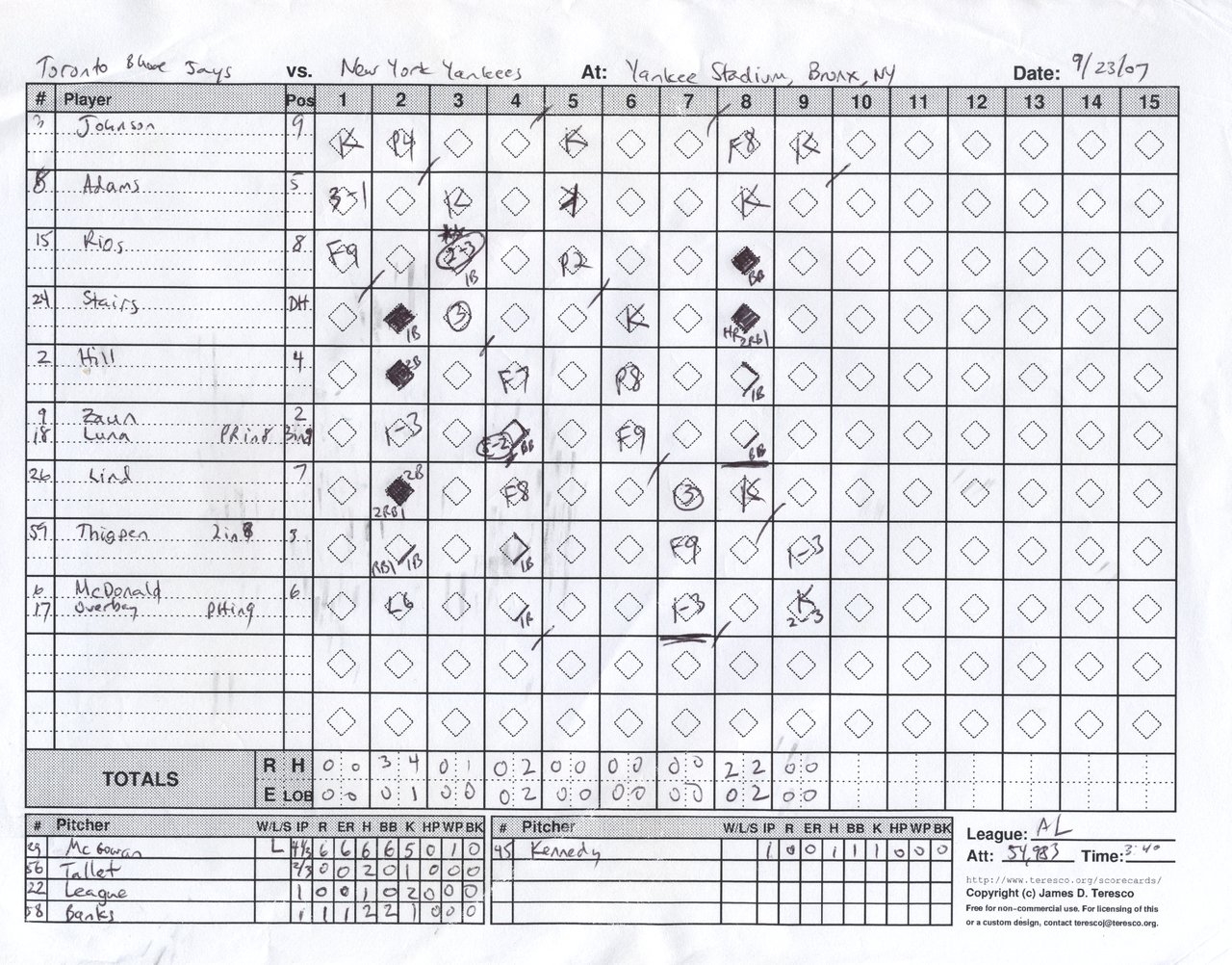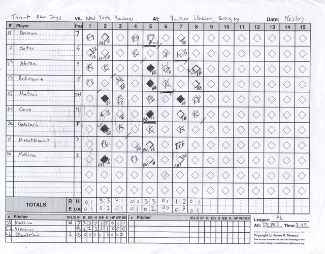 Toronto Blue Jays vs. New York Yankees, Yankee Stadium, Bronx, New York - September 23, 2007