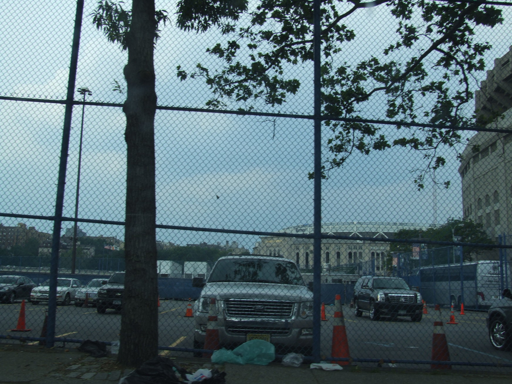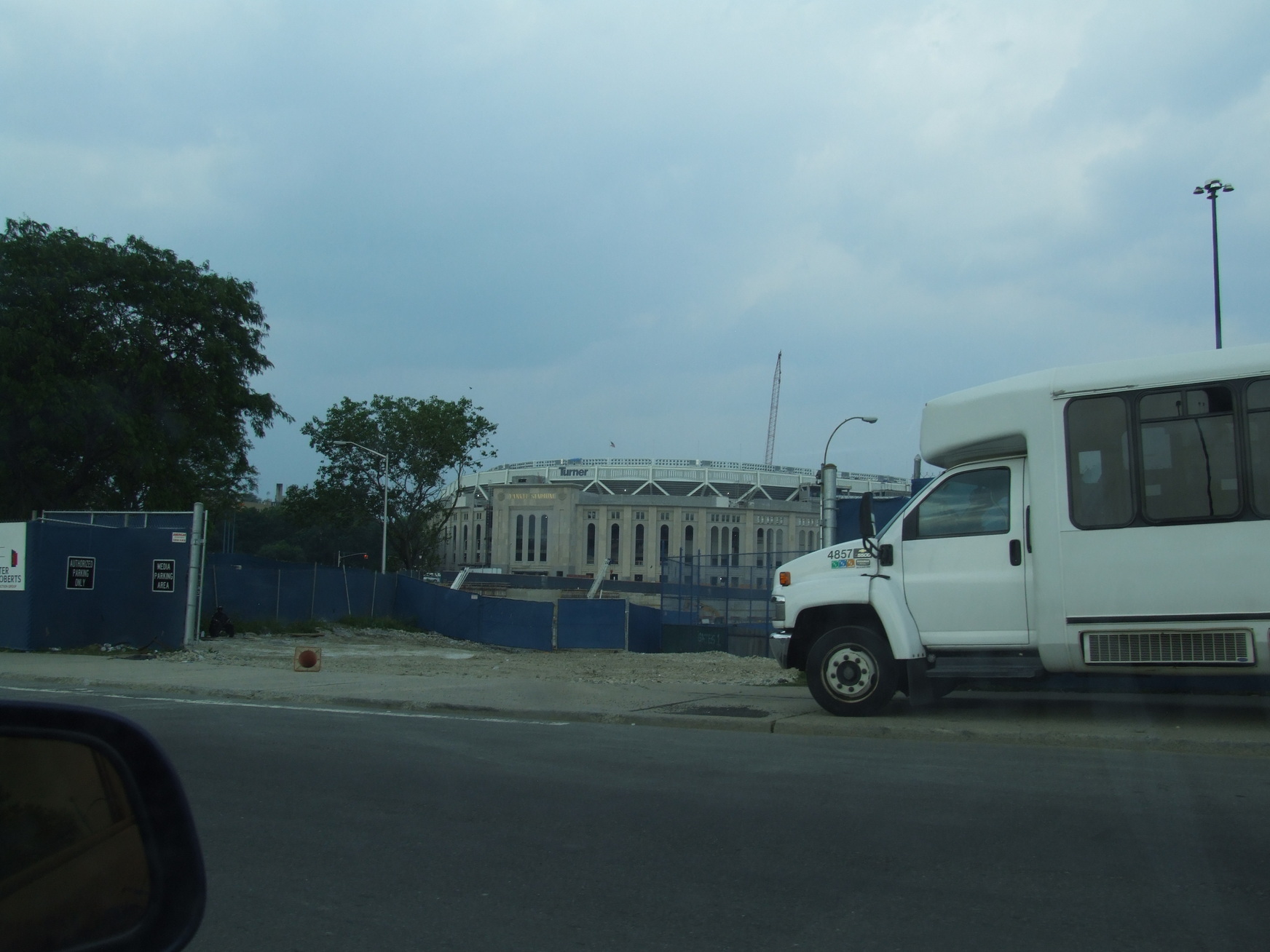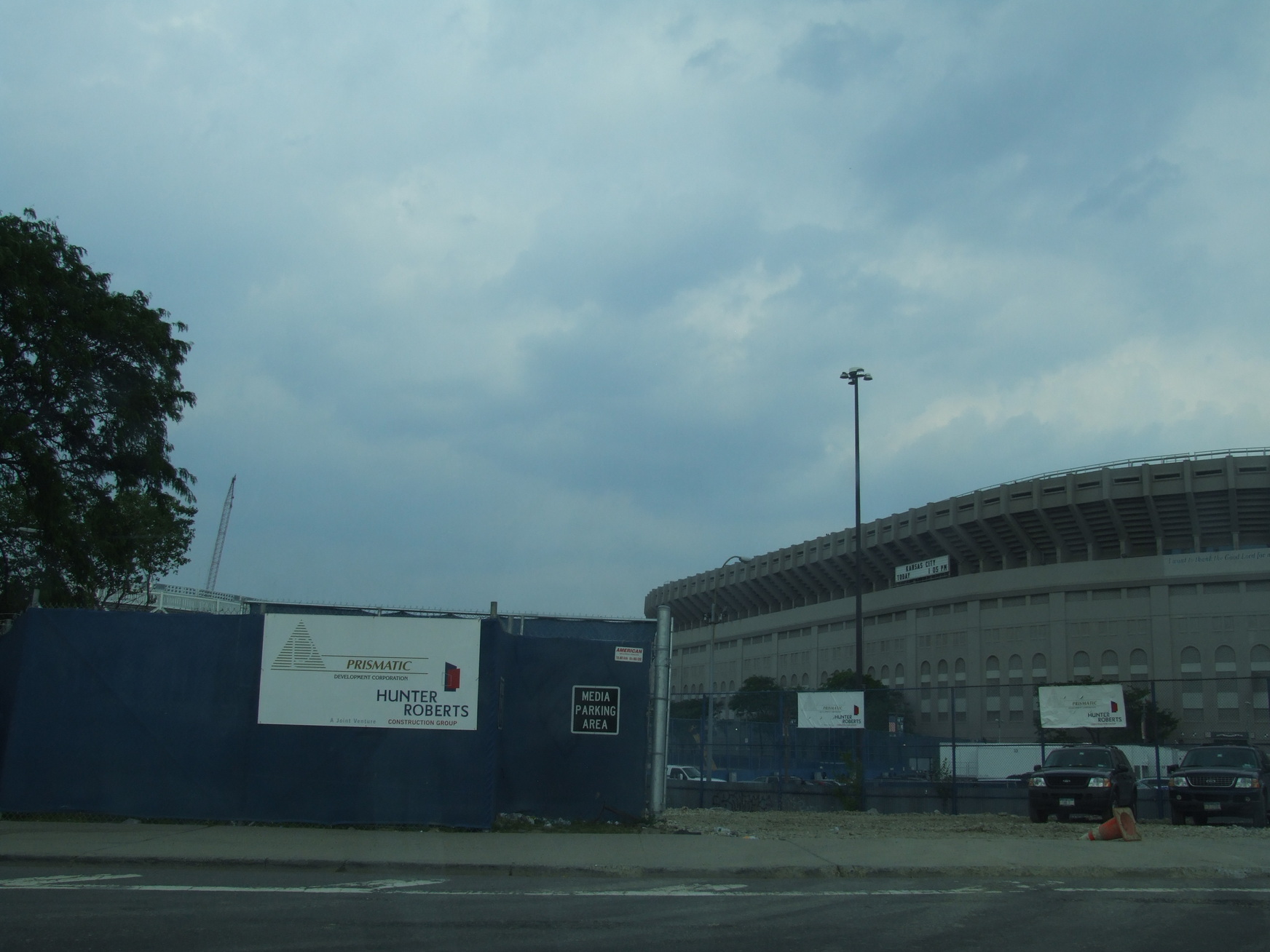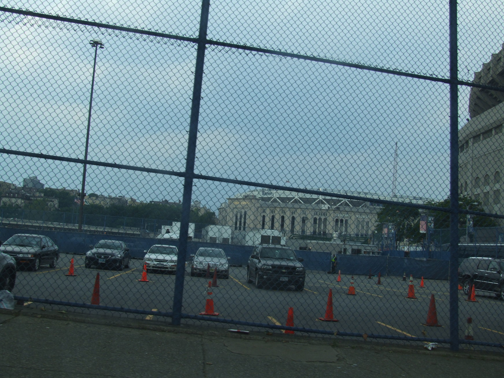 The new stadium beyond the players parking lot.