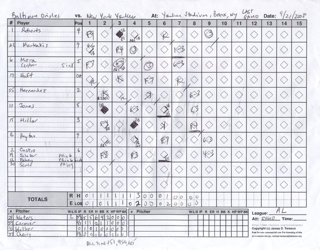 Last Game at Yankee Stadium: Baltimore Orioles vs. New York Yankees, Yankee Stadium, Bronx, New York - September 21, 2008