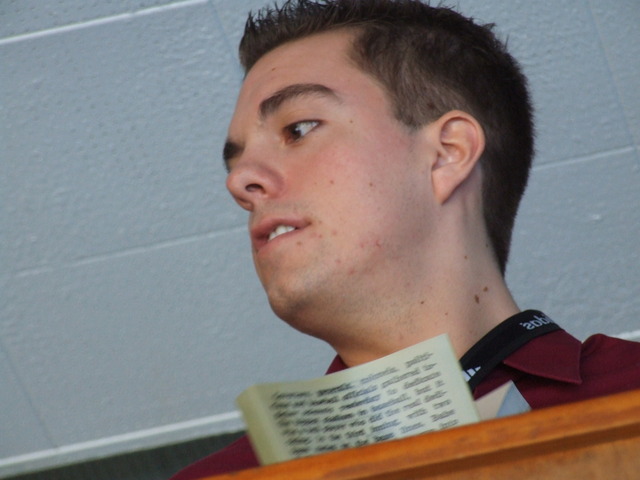Larry at the official scorer's podium.